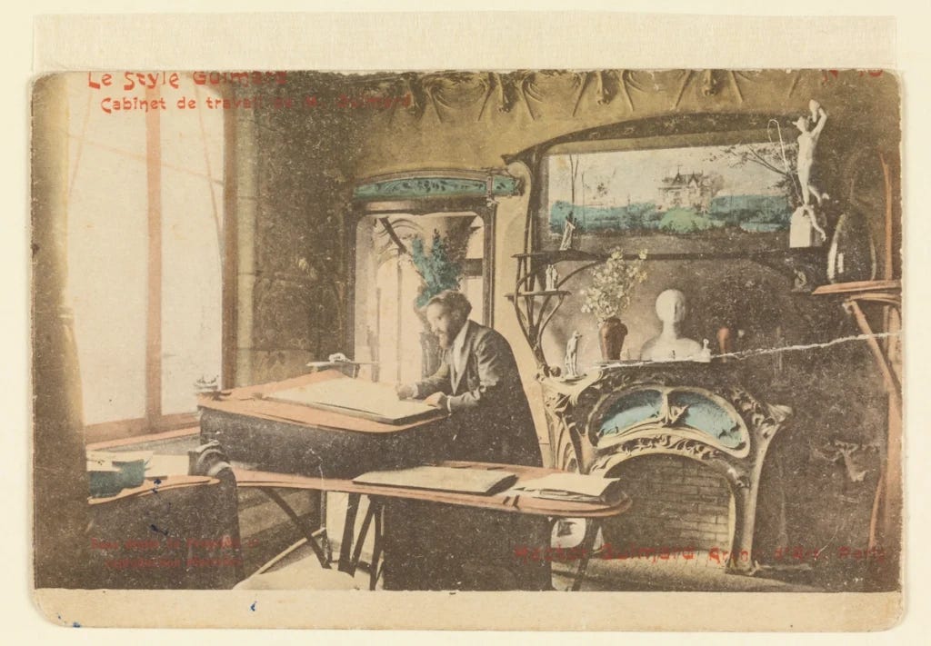 Elements of Guimard’s once-extensive work is still visible in occasion in Paris, even today, capturing his famed mantra ‘REject the flower, size the stem!’ Whether it is the remaining iconic entrance gates to the underground transport built for the inauguration of the Paris Exposition of 1900, which, with its beautiful patinated cast iron features, appear avant-garde even over a century later; or the Hôtel Guimard, the townhouse he built as his home and studio; or the earlier and over-the-top Castel Béranger, the residential building that still stands out in the 16th arrondissement; or the magnificent collection of furniture and objects on a permanent display at the Musée d’Orsay, his work has remained arresting and highly significant. He was so prolific during the first decades of his career that his style was not categorized simply as Art Nouveau, but instead called Le Style Guimard. He did it all: achieved the concept of a ‘total work of art’ like a few do, creating buildings, interiors, graphics, jewelry, and objects, integrated in spaces through his own personal language. Guimard has remained unmatched, but also enigma.