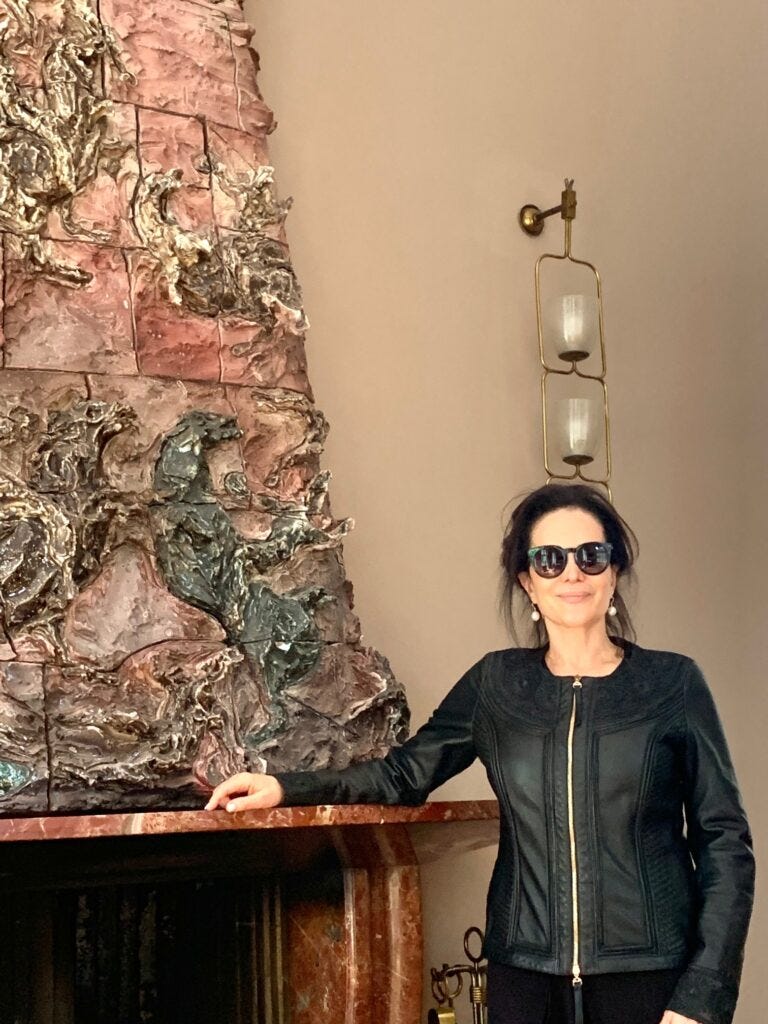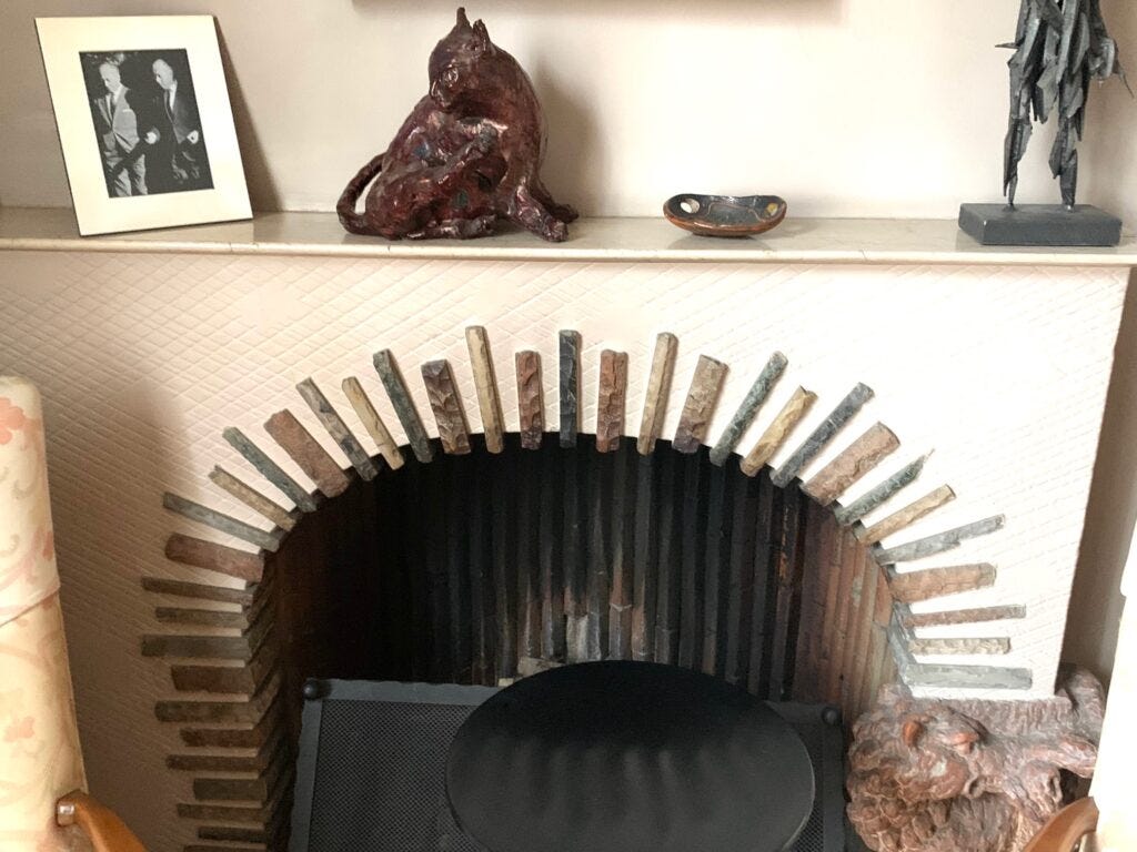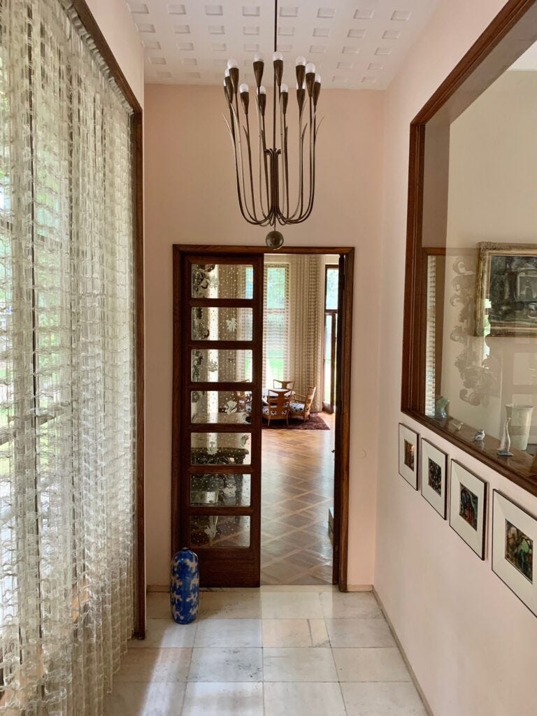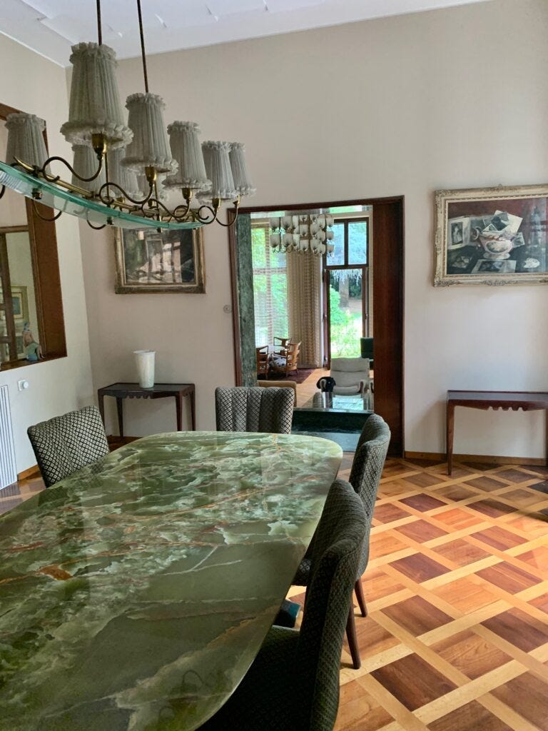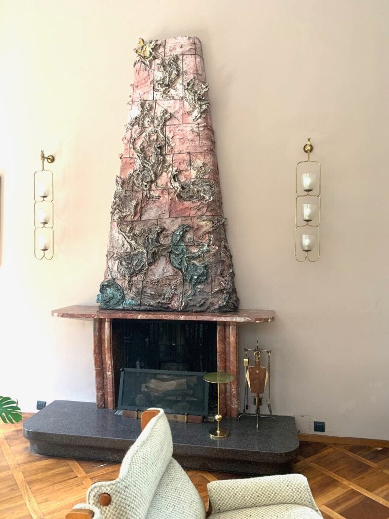 Tommaso spent many holidays and summers in this house, an impressive modernist structure covered in stucco and brick, with some beautiful ivy-covered walls and stunning garden, just 30 minutes north of Milan. Taking a private tour of this classic modern interior with Tommaso, filled with family memories, was certainly a once-in-a-lifetime experience, and was my favorite activity when traveling there. The sheer perfection of this expansive house and its interiors can only be achieved when creating the authentic and the humble. The house is a testimony to Borsani’s passion and is filled with objects that represent all stages of his career and the people with whom he collaborated. The centerpiece is the ceramic fireplace, sculpted by Borsani’s friend and collaborator, Argentinian-Italian sculptor and painter, Lucio Fontana, founder of the Spatialism Movement.