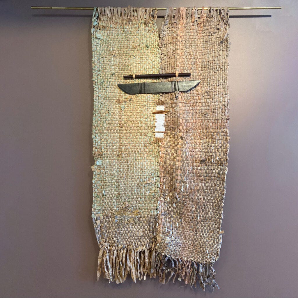 This morning, I included a visit to the gallery with my program, Collecting Design: History, Collections, Highlights. We met three of the seven participating designers to learn about the personal experiences and perspectives, and to discover the narratives—identity, heritage, and memory—in this work.