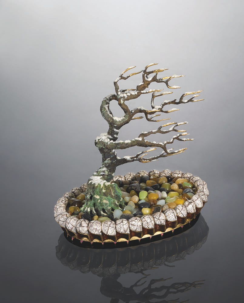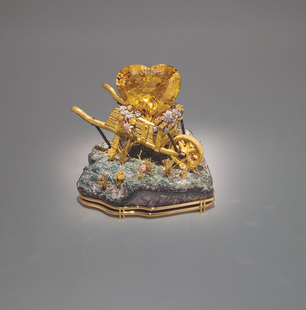 I did not know anything about French jeweler André Chervin (b. 1927), nor about his New York City atelier Carvin French, before entering the exhibition Enchanting Imagination: The Objets d’Art of André Chervin and Carvin French Jewelers at the New York Historical Society. For over six decades, Carvin French has become one of the most esteemed creators of handcrafted fine jewelry in the world, yet, the atelier has provided mostly private-label, commissioned works and most of his pieces were created for the jewelry houses of Cartier, Tiffany, Van Cleef & Arpels, and Verdura.