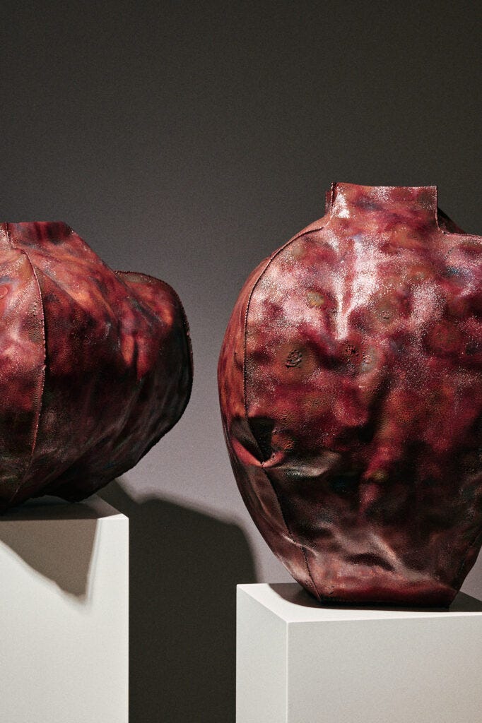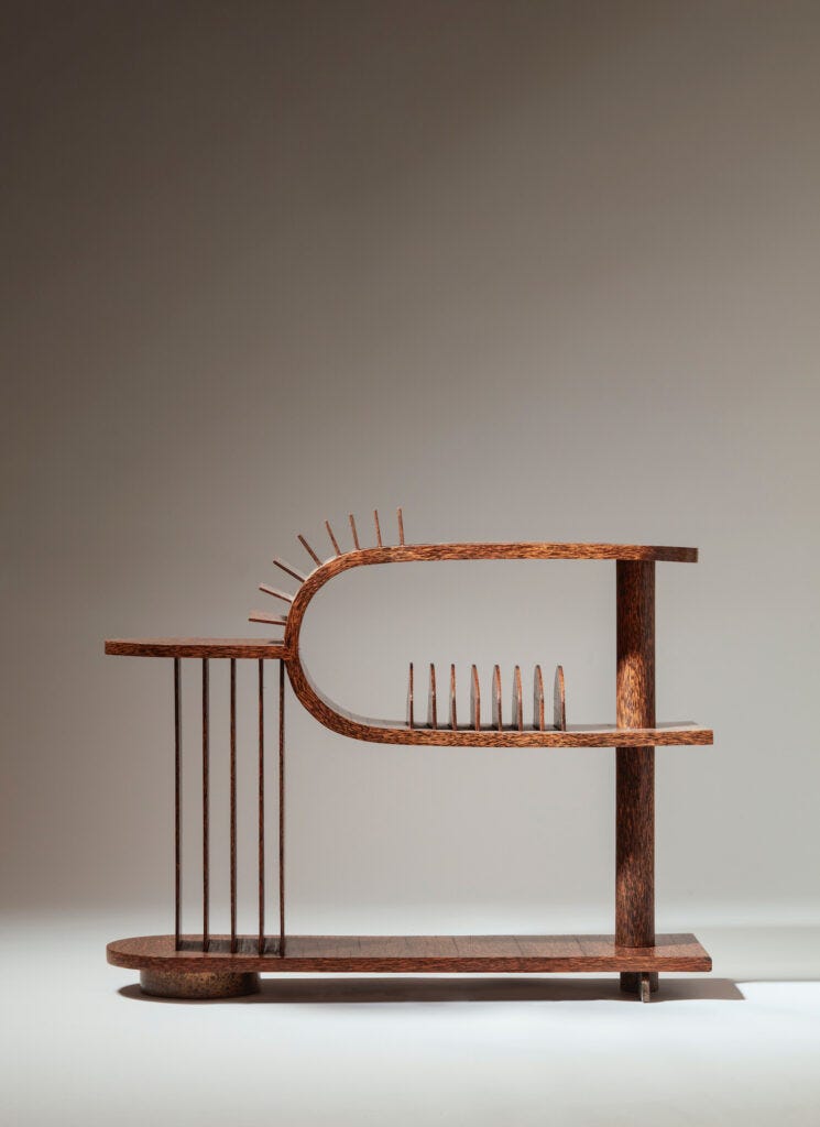Eugene Printz, Bookshelf, 1933; presented by Galerie Marcilhac. Ayala Serfati, SOMA Series: Suspended Sheffa, 2024; presented by Maison Gerard. George Nakashima, Slab I Coffee Table, 1966; presented by Onish Gallery. Yochiya Studio, Shippo vase, 2024; presented by Mia Karlova Galerie. Vladimir Kagan, Chaise, Model 5800, by Kagan-Dreyfuss, Inc., circa 1958; presented by Donzella Ltd. Zaha Hadid, ‘UltraStellar’, 2016; presented by David Gill Gallery. Hara Satoshi, Fower Vase Spiral Shell, 2017; presented by Onishi Gallery. Alan Meredith, Fuinseog #176, 2024; presened by Liz O’Brien. Sandra Davolio, Coral Flower II, 2023; presented by J. Lohamann Gallery. Fontana Arte, Bar Cart, 1960s; presented by Karl Kemp. Claude Lalanne, Table ‘Bambou,’ 1995; presented by Galerie Mathivet. Giuseppe Ducrot, Pair of White Amphoraes, 2022; presented by Twenty First Gallery. Paloma and Juan Garrido, ‘Quartz’ Console, 2019; presented by Garrido Gallery. Molly Hatch, ‘Attune,’ 2024; presented by Todd Merrill Studio. Norman Cherner Studio Group, Cabinet for Multiflex, Corp., 1954; presented by Weinberg Modern. Michel Anasse, Rooster Vase, 1965; presented by Thomas Fritsch. Michael Coffey, ‘Vortex,’ Coffee Table, 2024; presented by Maison Gerard.