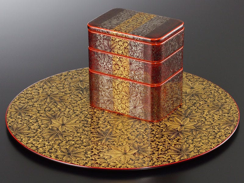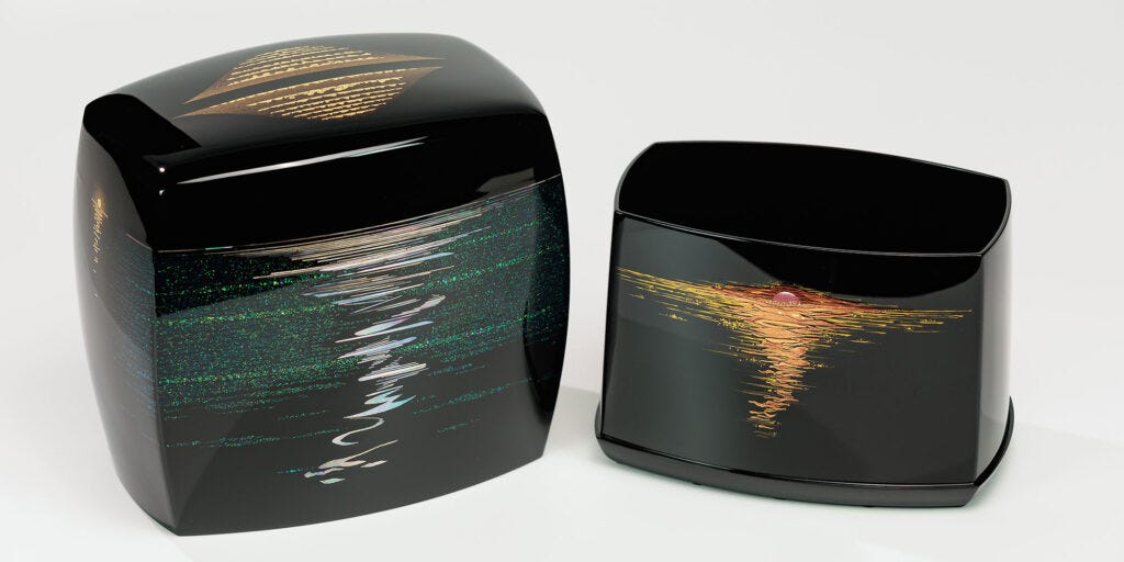 The show shines a light on the most exquisite contemporary expressions of Japanese lacquer art, demonstrating the richness and variety of techniques practiced in Wajima. Works by the three Living National Treasures—Yamagishi Kazuo, Komori Kunie, and Mae Fumio—are on display, alongside the works of fourteen other Wajima artists. Along with the exhibition, another project—a new tabletop collection by Senshudo, a leading producer of lacquer that comes to support Wajima’s lacquer—was launched. The series, designed by New-York-based interior designer Melissa Bowers, reflects on Wajima’s landscape and journeys of healing while using the traditional art of lacquer to reflect dining practices and to propose affordable lacquer art from Wajima.