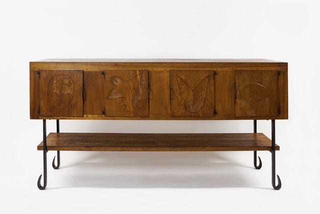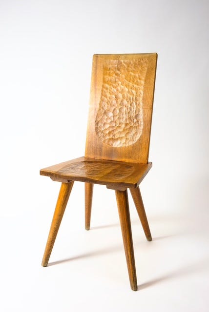 Touret is known to the general public less as a furniture designer and more for the monumental altar he created in the 1980s for the Notre Dame Cathedral in Paris, visited by millions and now under restoration following the 2019 fire. But in one of several chapters of his artistic life, between 1946 and 1963, while living in the remote town of Marolles, Touret devoted his creative efforts to designing furniture in which his visual language was embedded, and which expressed his life-long passion for wood.
