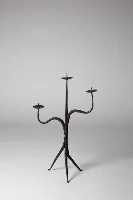 A newcomer to the strong, enduring collecting design market, Jean Touret (1916-2004) has joined the hot list of the French stars of the mid-20th century, whose furniture has achieve the status of blue-chip design. Touret was a sculptor who for 18 years designed handcrafted furniture in wood and iron, and they were exactly what was missing in the dynamic current design market. His name surfaced when the desirable, highly collectible pieces of furniture by Jean Prouve, Charlotte Perriand, and Pierre Jeanneret dried up, with the diminishing supply of rare, authentic, historically significant vintage pieces available for sale in galleries and auction houses. With fresh and exceptionally creative furniture, lighting, and objects, Touret quickly became a celebrated name among collectors, architects, and interior designers. To explore and deepen our knowledge, I have devoted to Jean Touret an entire session in the series ‘Collecting Design: History, Collections, Highlights,’ and to the atelier he established in the rural town of Marolles after the Second World War.
