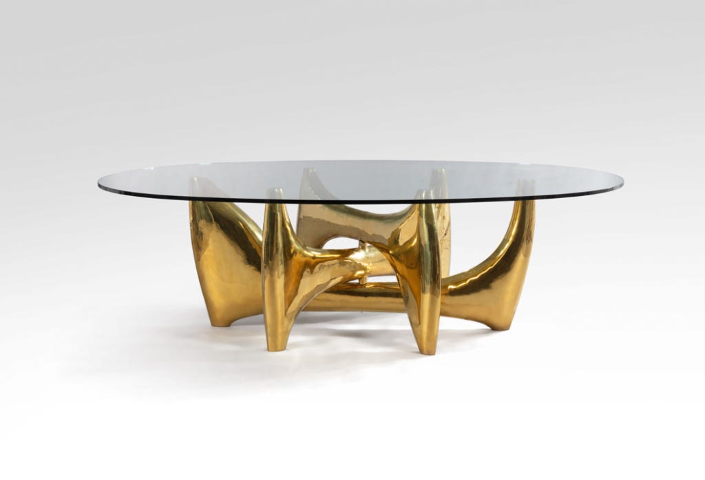 Gastou never confined himself to a particular period of the 20th century – he was too curious, and saw beauty in objects that others dismissed. He also resurrected forgotten talents. If he came across an original piece of furniture as he browsed, he sought out its designer. That was how he gave a second wind to the career of Ado Chale – whose tables topped with petrified wood or stone mosaics had thrilled buyers in the 1970s. Gastou also initiated the production of Philippe Hiquily’s sculpture-furniture, which had been in demand decades earlier. He exhibited work from every decade, and joyfully jumbled it together.