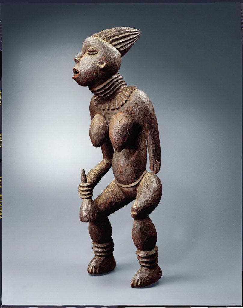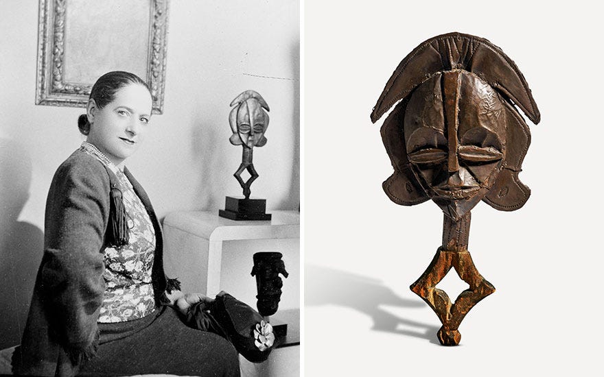 Rubinstein famously commissioned Salvador Dalí to paint murals in her dining room; and her homes were filled with baroque Venetian furniture, and the works of avant-garde art by Brancusi, Matisse, Picasso, Chagall which she had acquired directly from the artists. But none of these masterpieces could compare to the vast collection of African and Oceanic art that demonstrated Rubinstein’s taste for the Primitive. It is through these artifacts that she was able to recognize her own taste; her own personal identity. The collection was sold by Sotheby’s in 1964, a year after her death, setting many records. The pieces from her collection continue making headlines and are considered among the best African artifacts in existence.