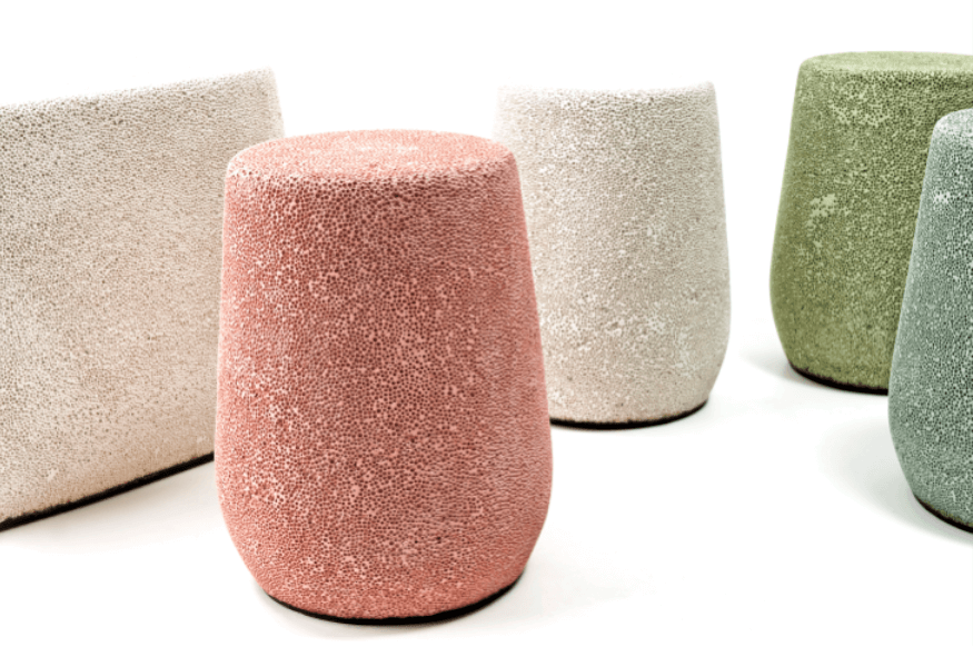 When you think of porcelain, you probably think of bone china, or delicate tableware of the type used in fancy dinners; or you may think of an antique blue-and-white ware from China, where porcelain was first developed 2,000 years ago, and from which it had spread to East Asia. But when we entered the Eindhoven-based studio of Dutch designer Djim Berger, these perceptions of porcelain immediately disappeared. The young designer (b. 1980) has developed a technique that allows him to create furniture out of porcelain. A graduate from the Design Academy Eindhoven has been called the ‘alchmist,’ for the endless experiments that he has conducted in porcelain in order to break its boundaries and to open the material to new possibilities. I have first seen Berger’s ‘Lightweight Porcelain’ collection at Galerie BSL, which has represented him for several years, and fell in love. By combining porcelain with Styrofoam, he has discovered that he can achieve material that has the quality of fossil, from which he creates stools, benches, and other forms of furniture. Hosting us at his new studio, Berger explained that after testing the material, he has achieved a successful formula where he mixes 1/3 of porcelain with 2/3 Styrofoam pearls, which are burned when the piece enters the kiln, leaving a new type of porcelain, and material is born. I would to thank Béatrice Saint-Laurent, founder of Galerie BSL for making this visit possible.