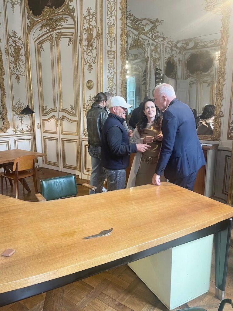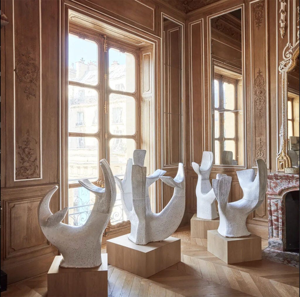 With Ashlee Harrison on bronze Chair by Wendell Castle at Friedman Benda. Galleria Rossella Colombari Lebreton Gallery with installation of ceramic sculptures by Jean Derval. With Lee Mindel and Jose Marty. Leading a tour for Christie’s With Olivier Dwek and Loic Le Gaillard With Patrick Seguin and Vincen van Duysen. Sarah Myerscough Gallery. Galerie Chastel Maréchal. L’hôtel de Maisons, Paris; Photo by Fabrice Gousset for Design Miami/Paris. Studio Visit with Erwan Boulloud