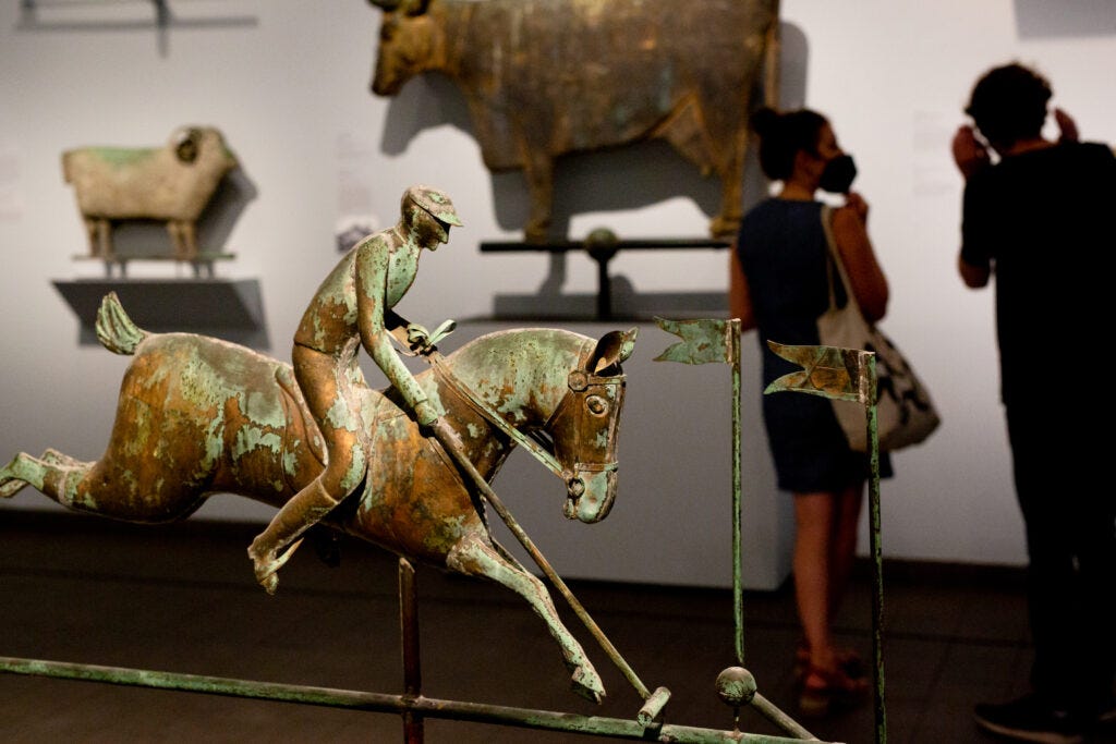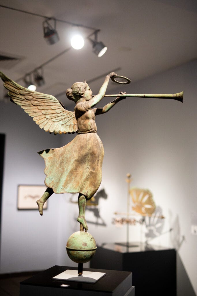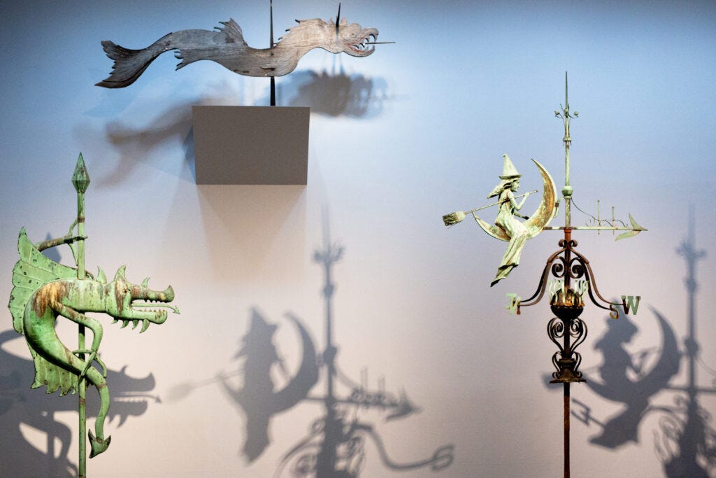 The first historic museum show devoted to weathervanes opened at the Newark Museum in 1930, followed by a 1965 seminal show at the American Folk Art Museum. While there has been no scholarly exhibition of weathervanes since the 70s, the current show presents the crème de la crème, demonstrating why they have become desirable art objects. Private collectors had come to pay attention to weathervanes when American museums were still interested in collecting solely European art. In fact, the founder of the Museum, dealer Adele Earnest (1901-1993), is credited for pioneering the weathervane in the art market.