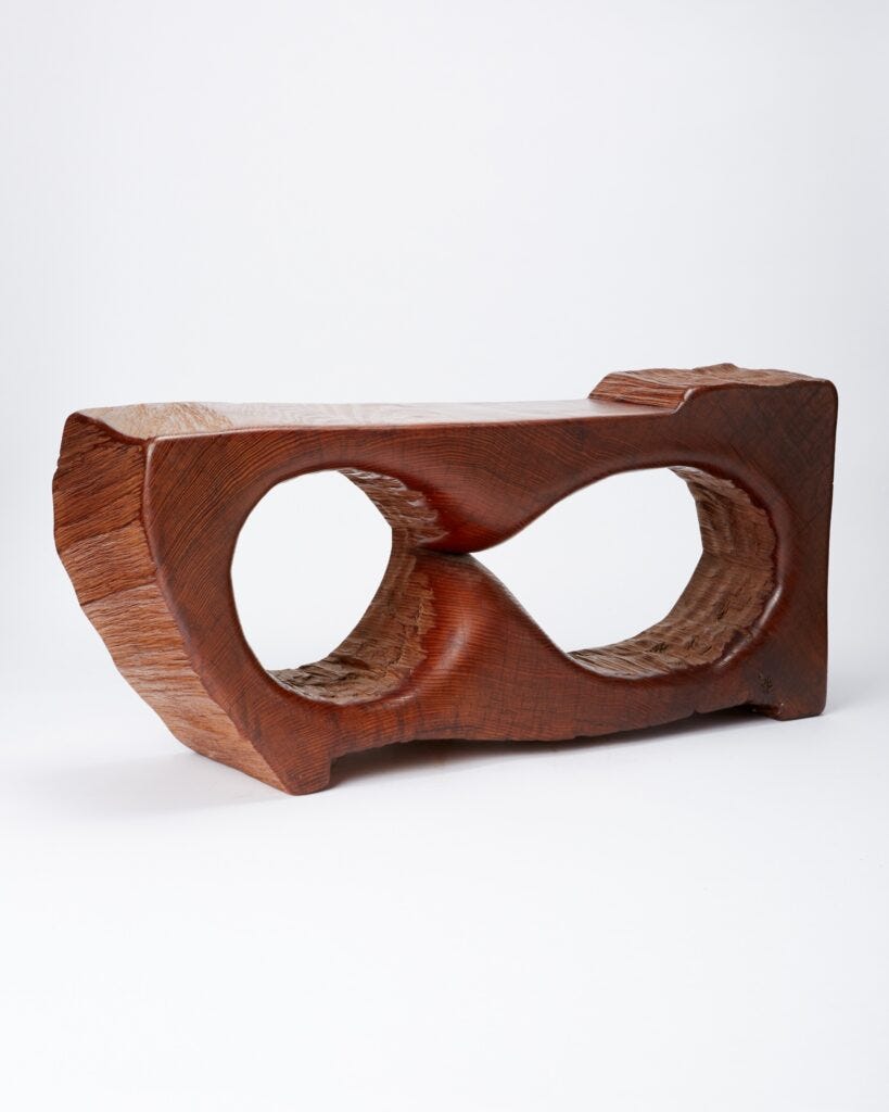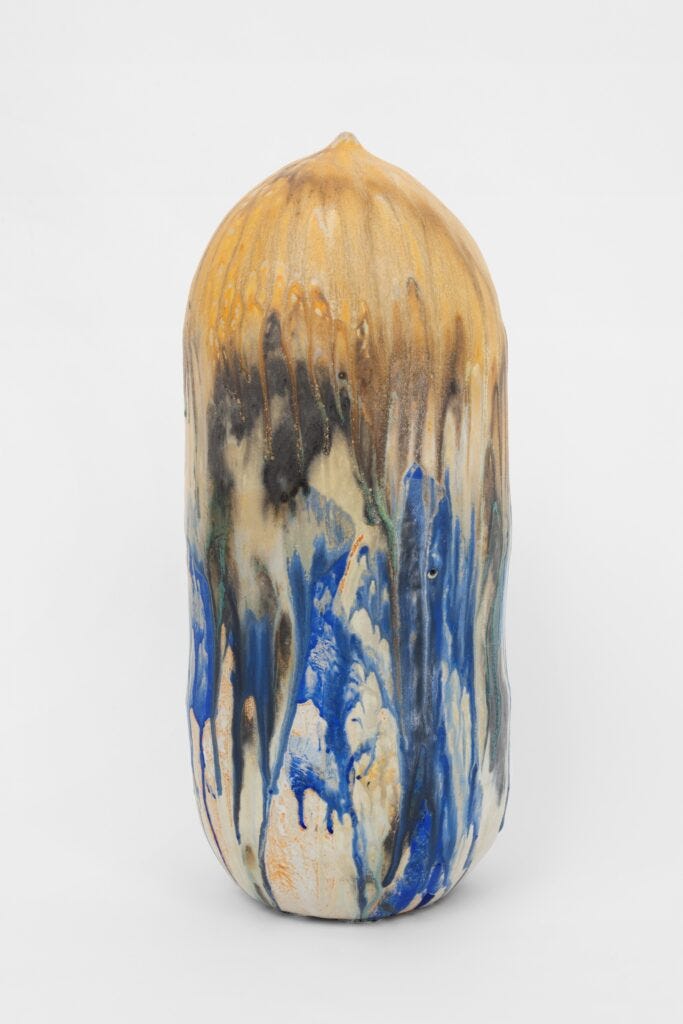 Although Blunk and Takaezu never met, both upheld artistic autonomy as a supreme value, while refusing the binary opposition of fine arts versus crafts. Anticipating the principles of the back-to-the-land and do-it-yourself movements, both artists sought to live and work in tune with the non-human environment, and to center the land in their work. At the same time, Blunk and Takaezu each knowingly employed technological instruments and industrial materials, harnessing their destructive capacities—from the noxious fumes and noise of the chainsaw to life-threatening glaze chemistries—to create works of otherworldly beauty and surprising utility.