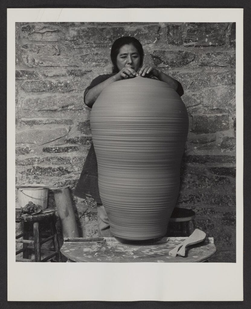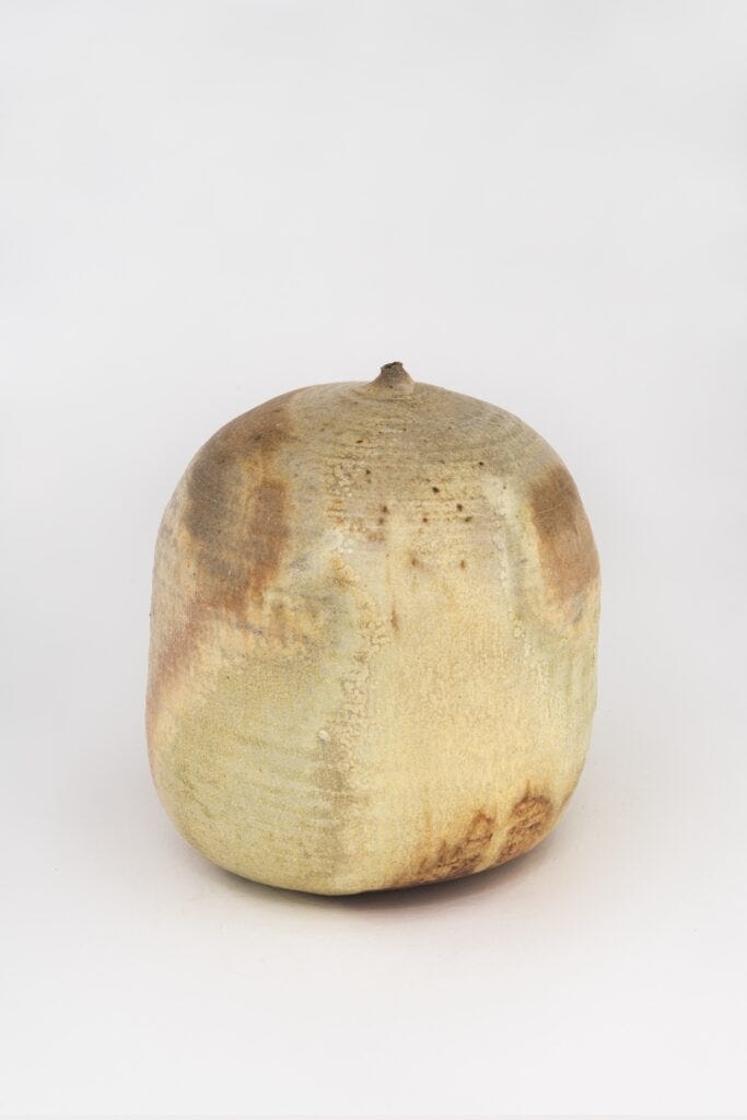Soon after Blunk’s apprenticeship ended, another American visitor arrived on Kaneshige’s doorstep: Toshiko Takaezu. Born in Hawaii to a family of Okinawan Japanese immigrants, Takaezu had already established her reputation as a professional potter and was about to begin a teaching position at Cleveland Institute of Art. During a six-month excursion across Japan from 1955-56, she met with numerous ceramicists, including Kaneshige, whose philosophical commitment to pottery left a mark on her. She returned to his studio to practice on his wheel, becoming one of the first American women to gain access to this rarefied—and thoroughly male-dominated—craft culture.