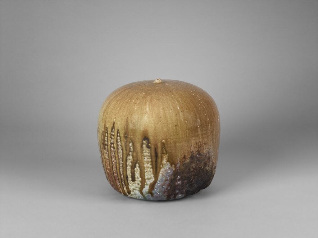 Following her Japan trip, Takaezu took an increasingly experimental approach to ceramics, embracing accidents and imperfections in her clay bodies and favoring closed forms without obvious functionality. In 1964, she moved from Ohio to rural New Jersey, where, aided by live-in apprentices, she made increasingly large closed vessels, treating the pot’s exterior surface as a three-dimensional canvas. Each winter, Takaezu returned to Hawaii to reconnect with family and the landscapes of her childhood; these journeys informed many of her most ambitious and experimental works, from sculptural trees to glazed vessels evocative of the Pacific Ocean. So did Takaezu’s garden, a focal point of her daily activity and frequent source of inspiration.